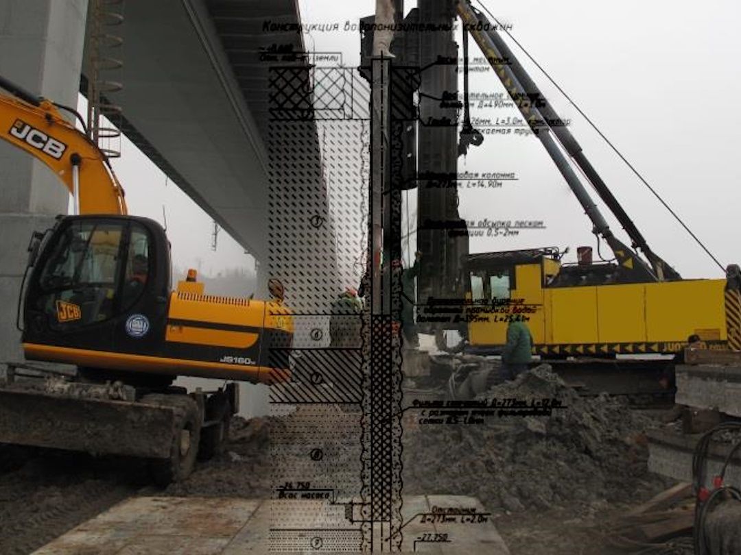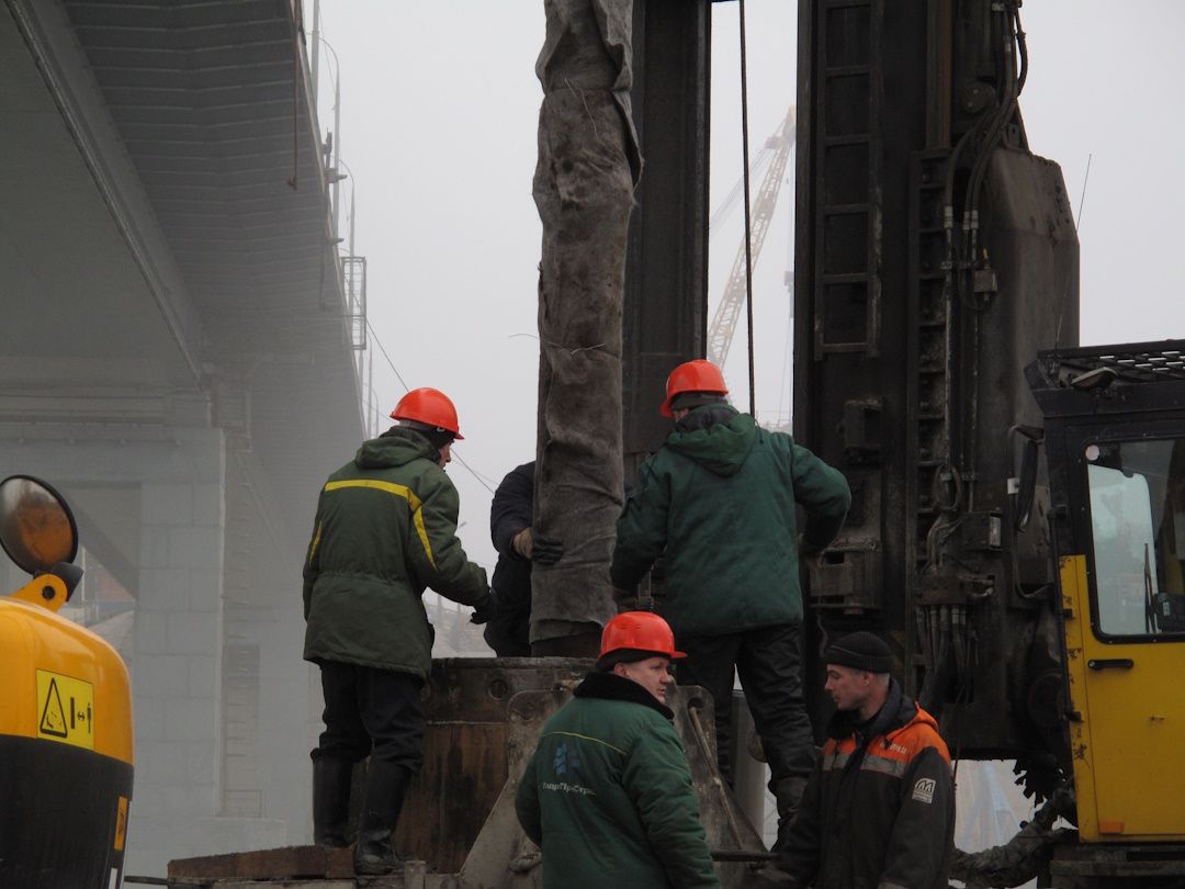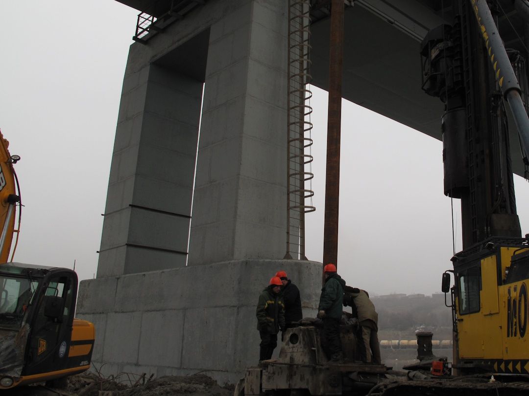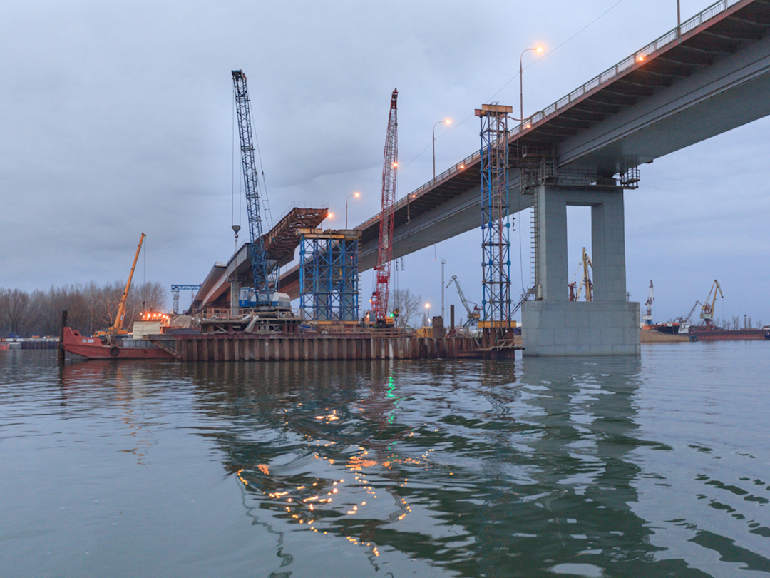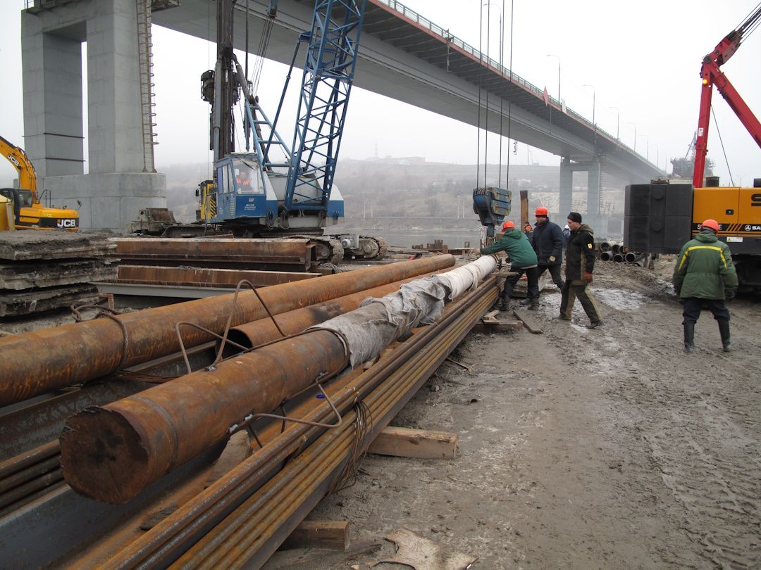 Уникальность объекта: опоры моста находятся в русле реки, уникальные буровые работы с плавучей платформы.