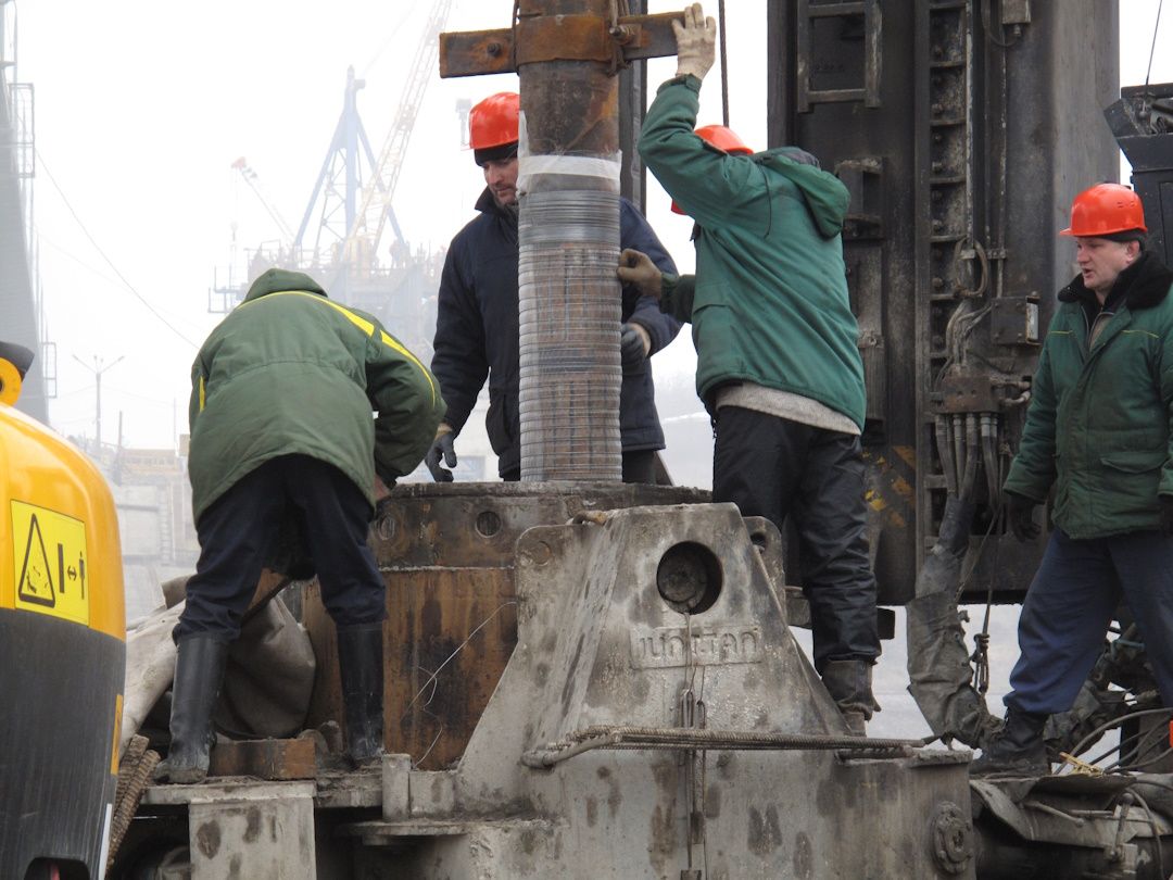 При устройстве системы водопонижения на объекте было пробурено и оборудовано 16 водопонизительных скважин, смонтировано 2 иглофильтровые установки. Все работы выполнялись собственными силами. Эксплуатация системы водопонижения длилась около восьми месяцев.