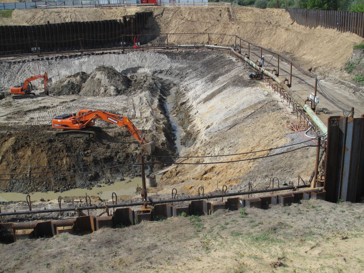 Электроснабжение системы водопонижения выполнено от двух взаимнорезервирующих источников по высокой и низкой сторонам. Срок эксплуатации системы водопонижения составил 14 месяцев. На время паводка система водопонижения консервировалась, котлован затапливался с последующей откачкой «мертвого объёма» из котлована и восстановлением в работу системы водопонижения.