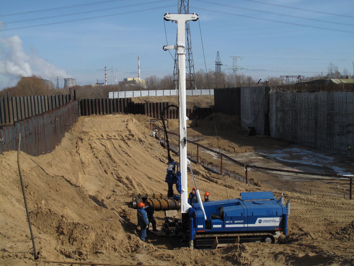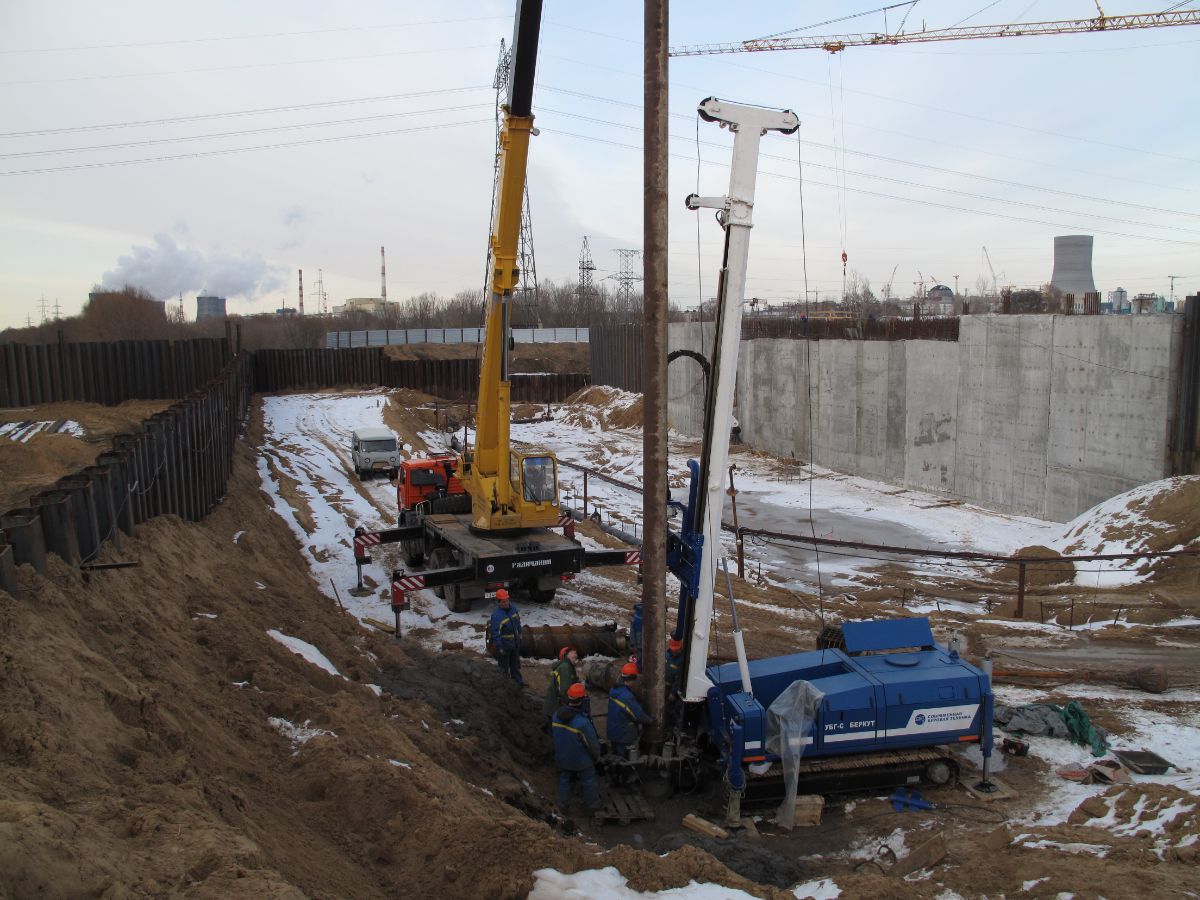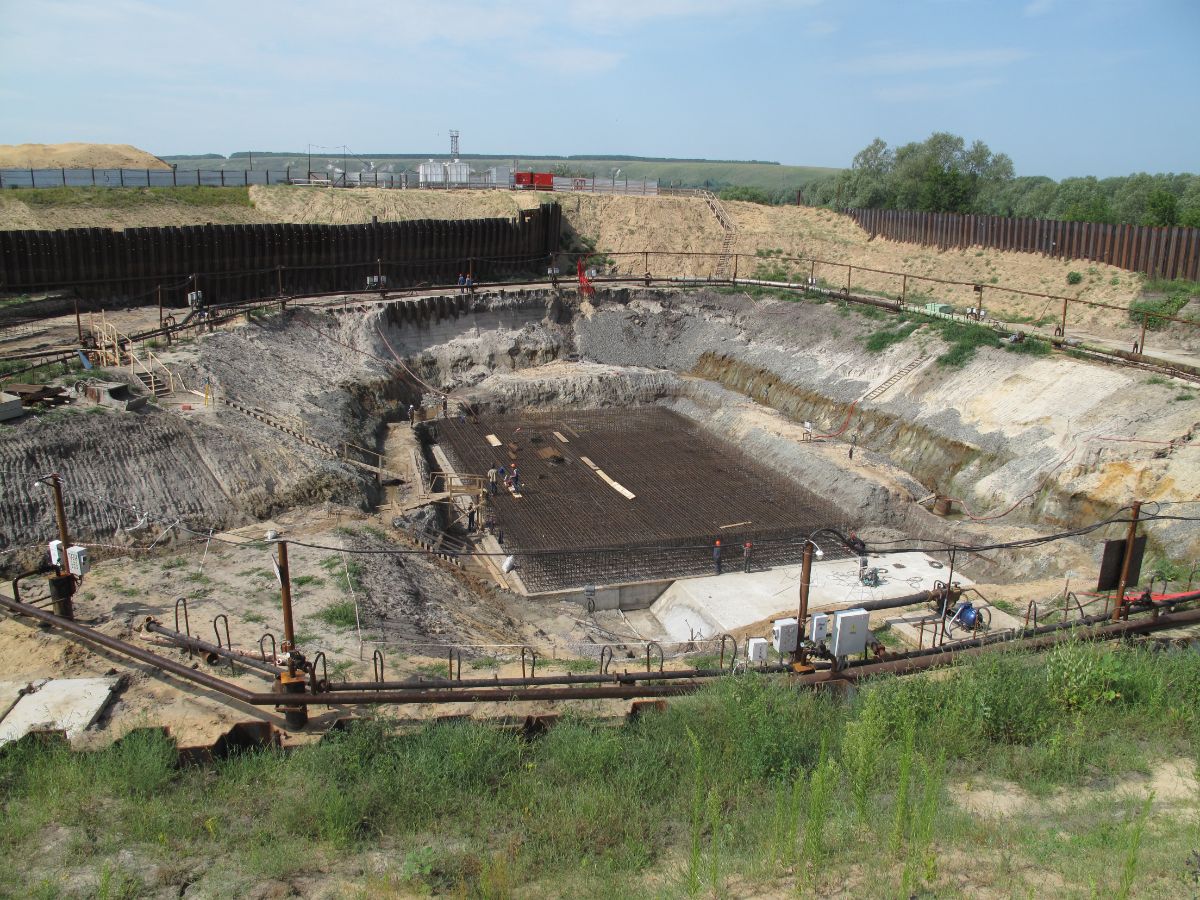 Уникальность объекта: производство буровых работ первого этапа велось с отметки ниже уровня подземных вод, при вскрытии известняка начинался самоизлив скважин, бурение выполнялось ударно-канатным способом. Производство буровых работ второго этапа производилось способом обратной промывки под прикрытием запущенной системы водопонижения первого этапа, устройство водопонижения второго этапа выполнялось в реке Дон на насыпном грунте.
