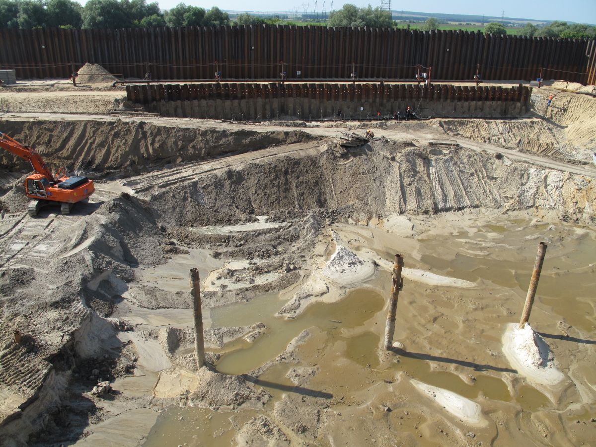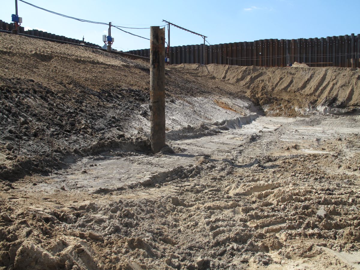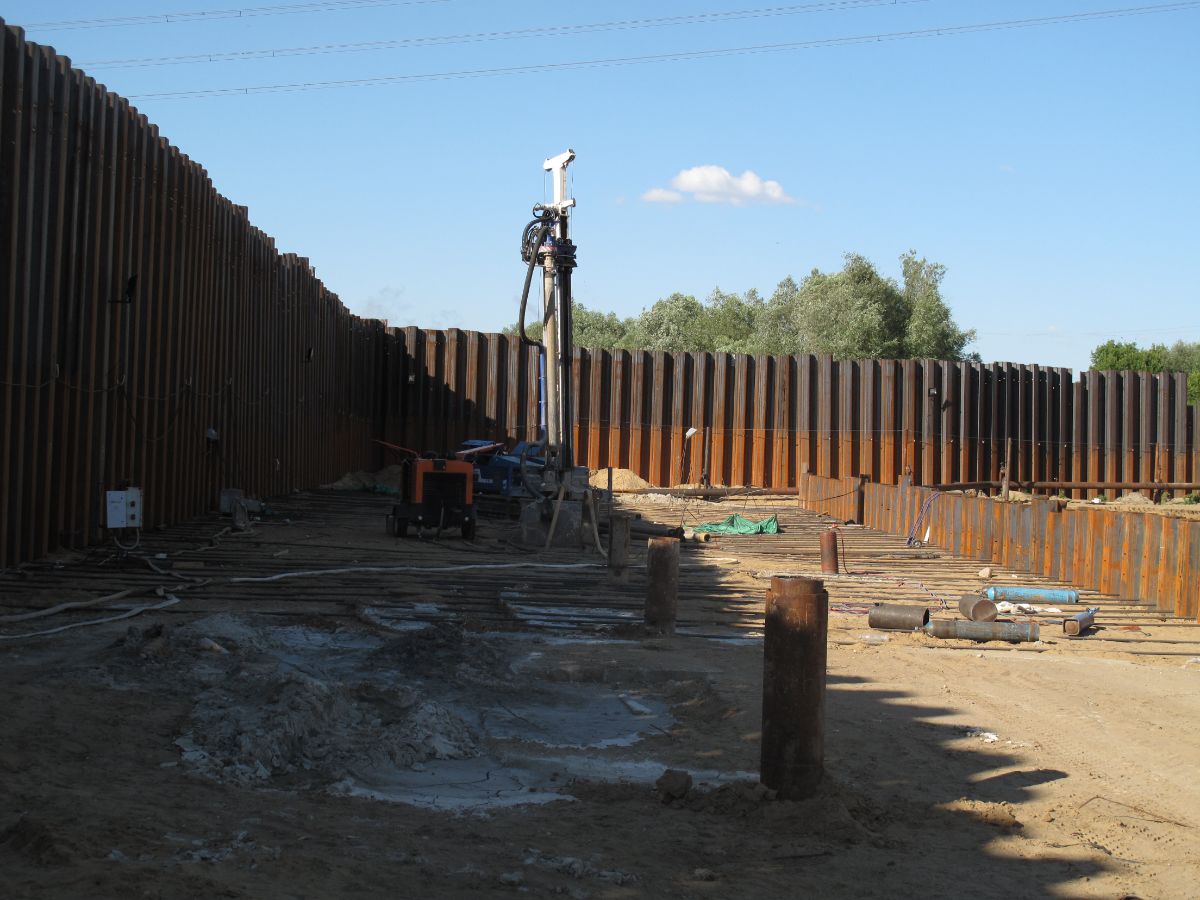 Уникальность объекта: производство буровых работ первого этапа велось с отметки ниже уровня подземных вод, при вскрытии известняка начинался самоизлив скважин, бурение выполнялось ударно-канатным способом. Производство буровых работ второго этапа производилось способом обратной промывки под прикрытием запущенной системы водопонижения первого этапа, устройство водопонижения второго этапа выполнялось в реке Дон на насыпном грунте.
