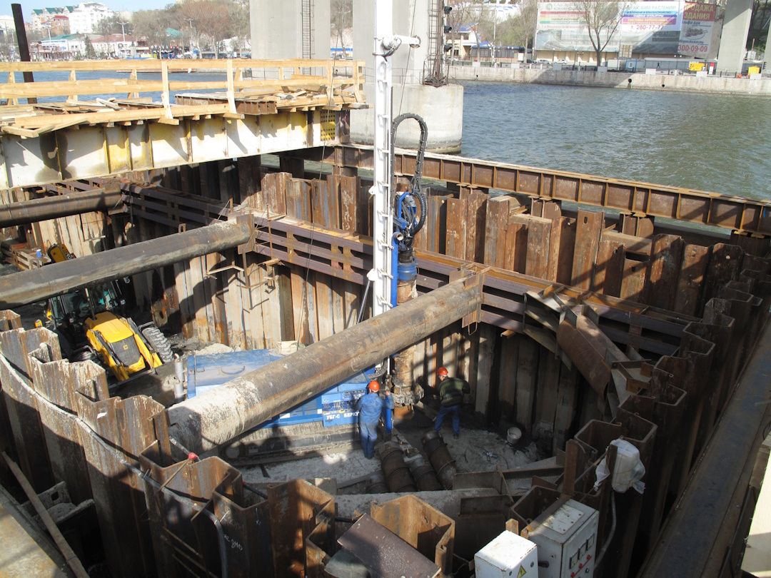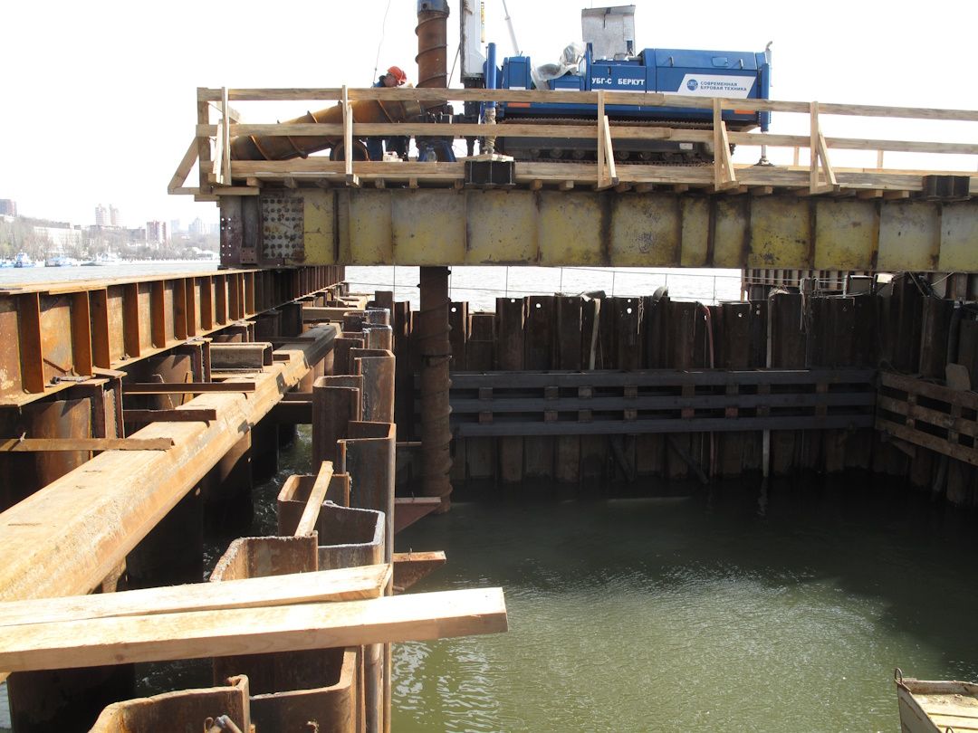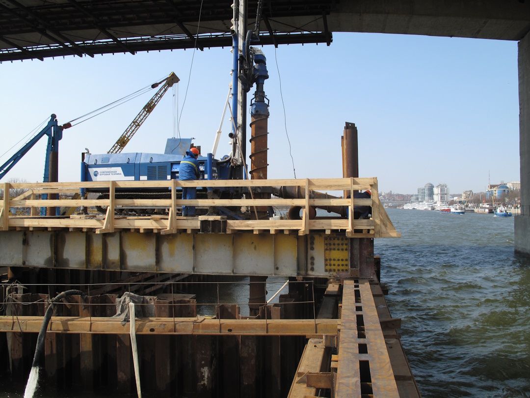 Опоры моста находятся в русле реки, буровые работы производились с подмостей, непосредственно в реку Дон и со дна реки, после откачки «мертвого объёма» из котлована. Уникальные буровые работы.