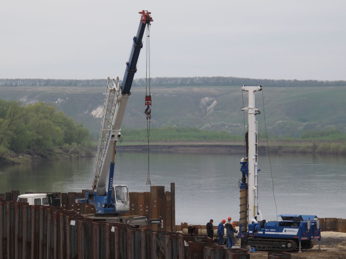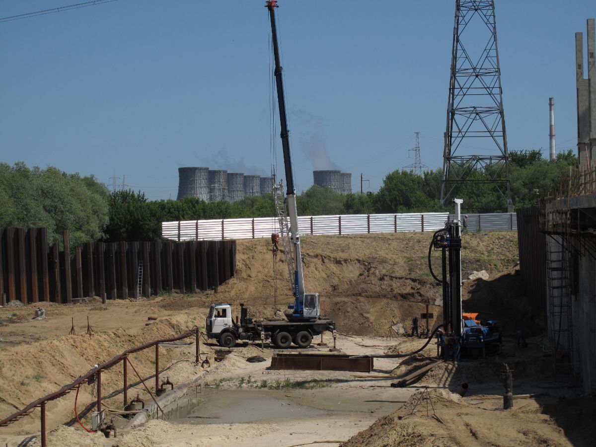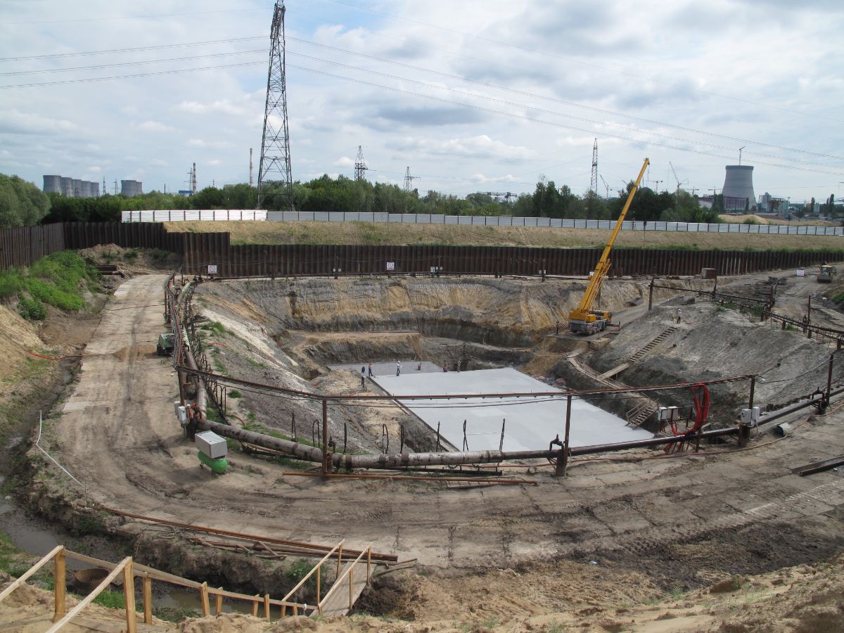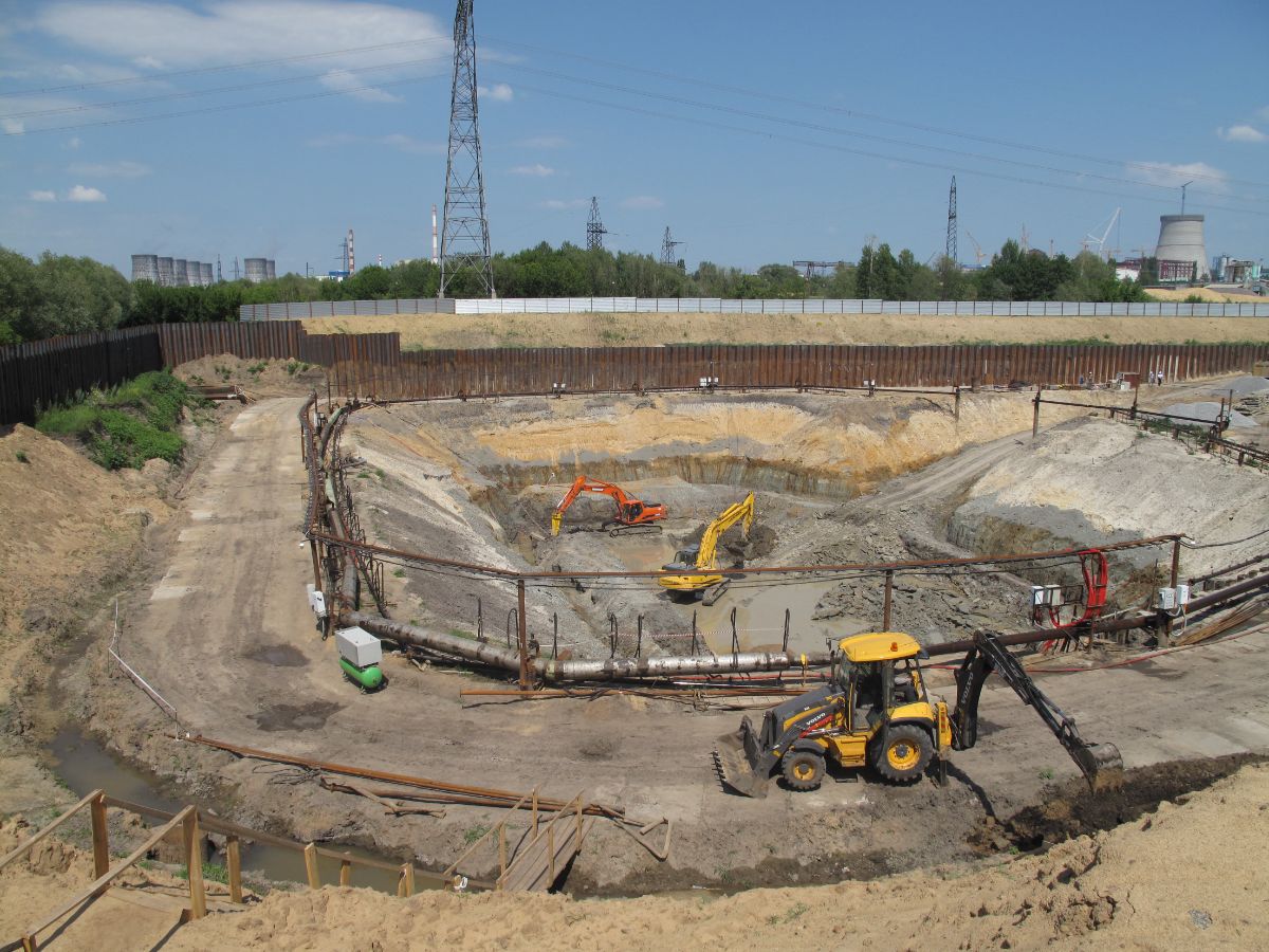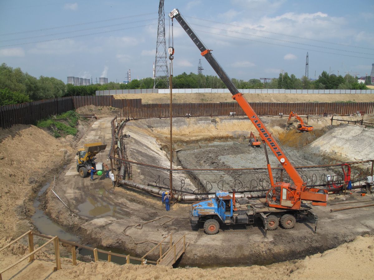 Уникальность объекта: производство буровых работ первого этапа велось с отметки ниже уровня подземных вод, при вскрытии известняка начинался самоизлив скважин, бурение выполнялось ударно-канатным способом. Производство буровых работ второго этапа производилось способом обратной промывки под прикрытием запущенной системы водопонижения первого этапа, устройство водопонижения второго этапа выполнялось в реке Дон на насыпном грунте.