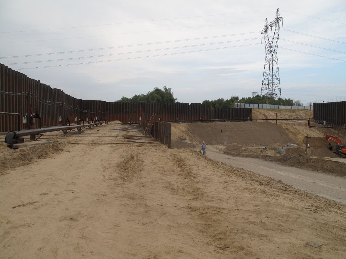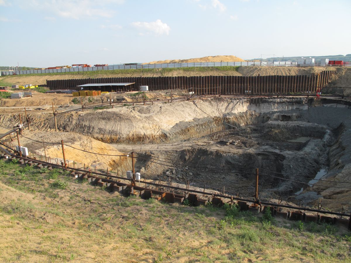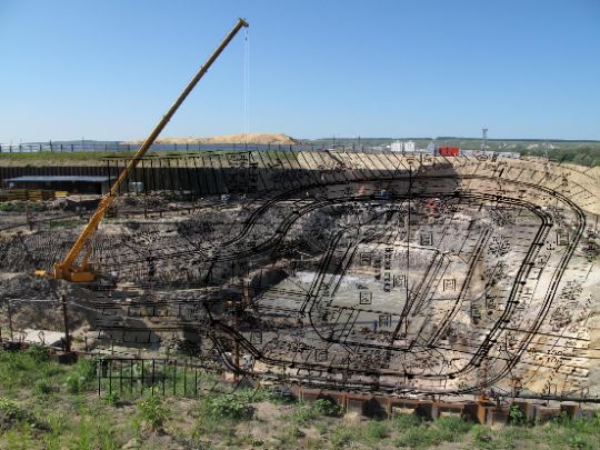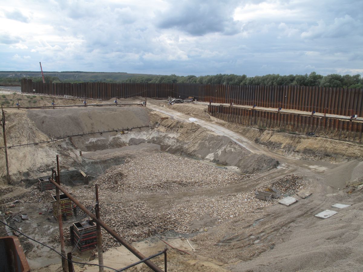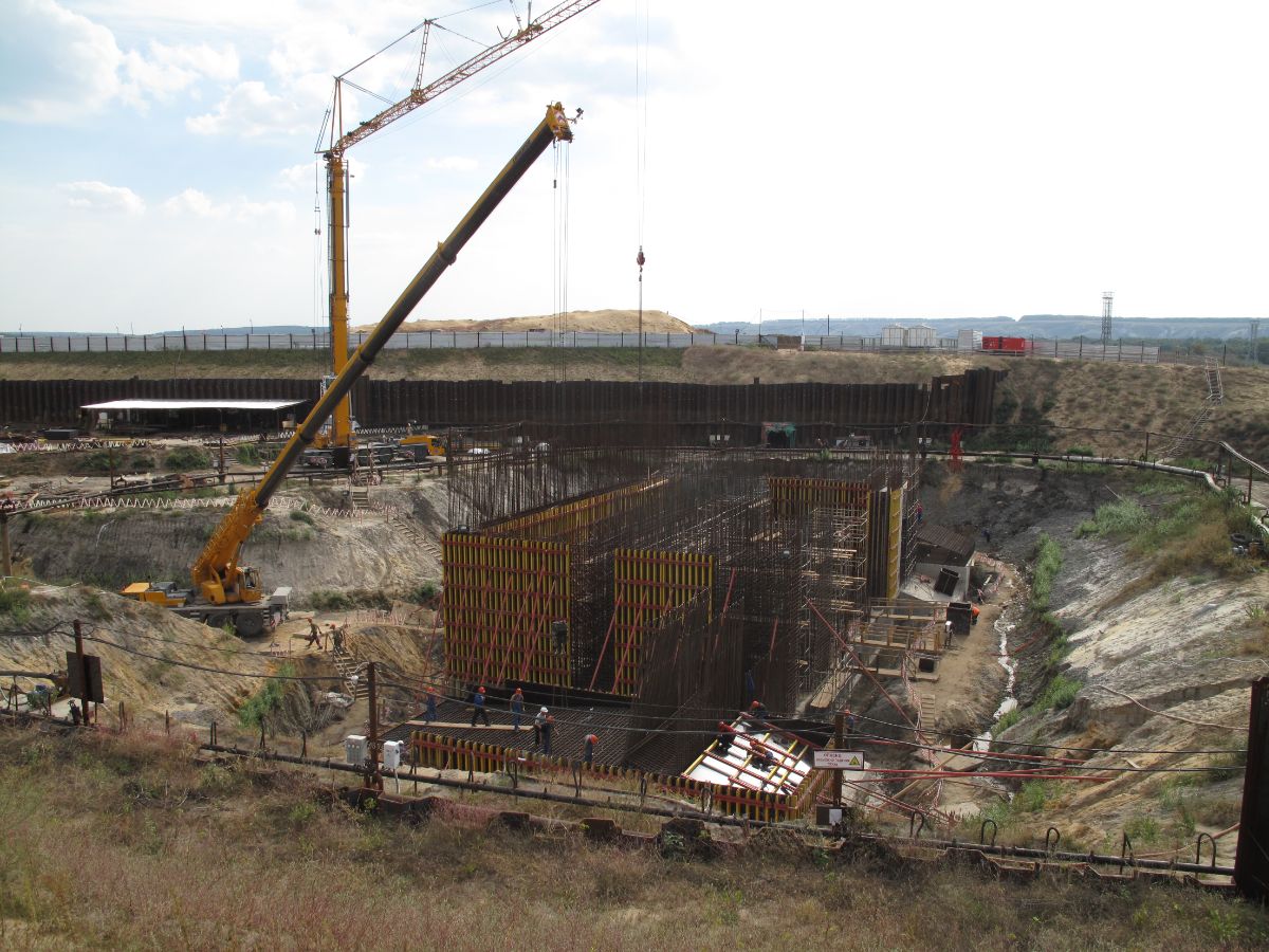 Уникальность объекта: производство буровых работ первого этапа велось с отметки ниже уровня подземных вод, при вскрытии известняка начинался самоизлив скважин, бурение выполнялось ударно-канатным способом. Производство буровых работ второго этапа производилось способом обратной промывки под прикрытием запущенной системы водопонижения первого этапа, устройство водопонижения второго этапа выполнялось в реке Дон на насыпном грунте.