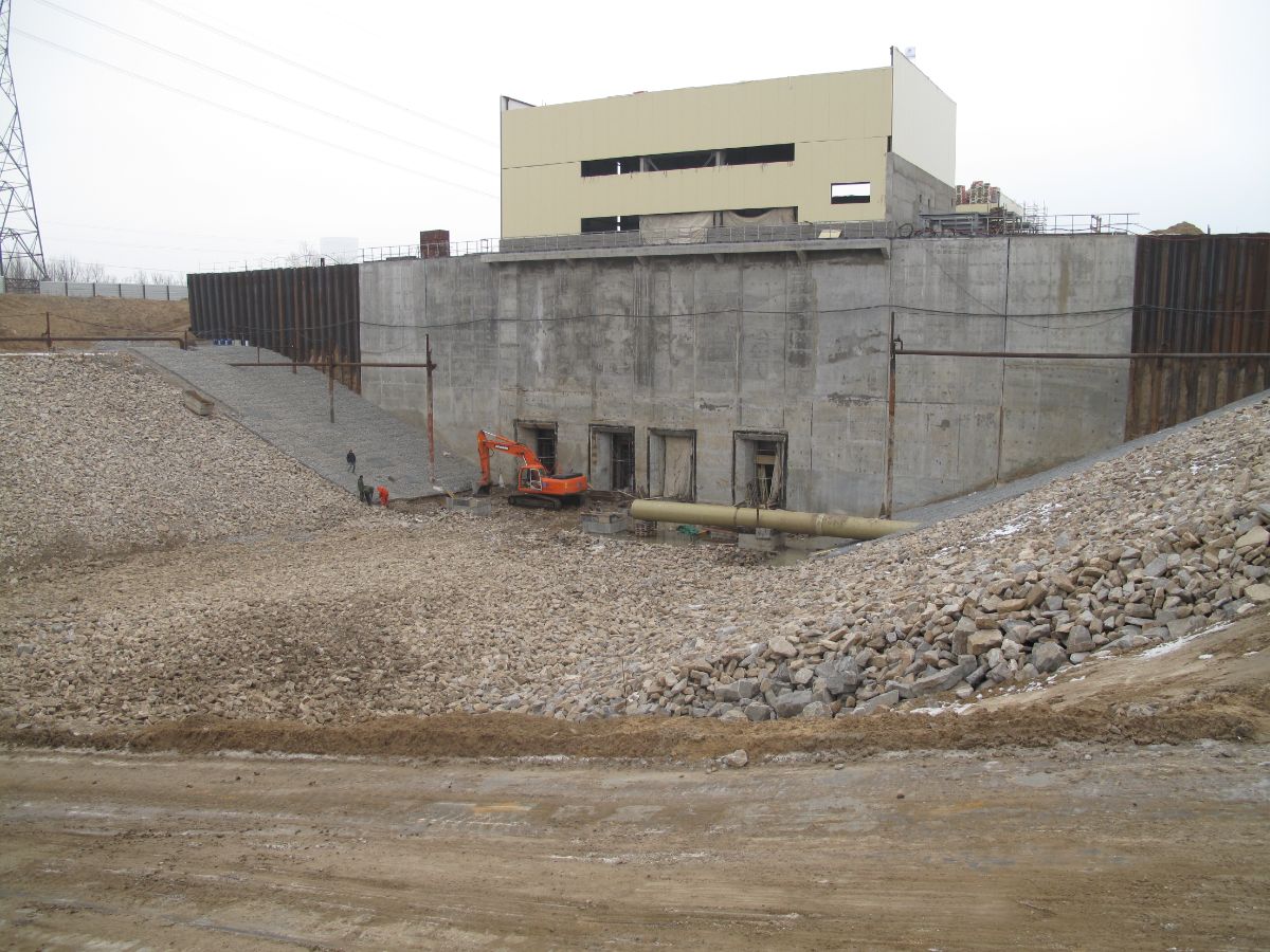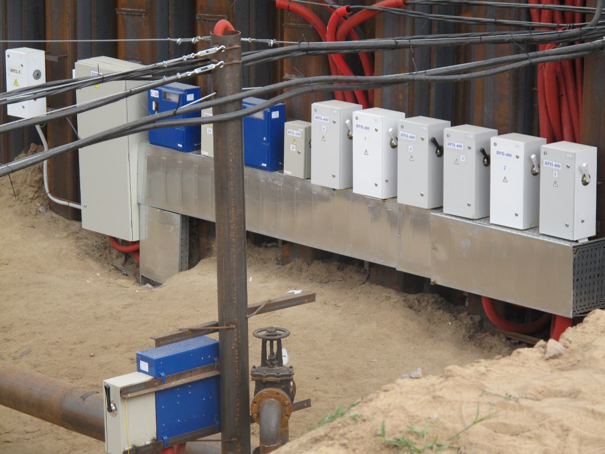 Электроснабжение системы водопонижения выполнено от двух взаимнорезервирующих источников по высокой и низкой сторонам. Срок эксплуатации системы водопонижения составил 14 месяцев. На время паводка система водопонижения консервировалась, котлован затапливался с последующей откачкой «мертвого объёма» из котлована и восстановлением в работу системы водопонижения.