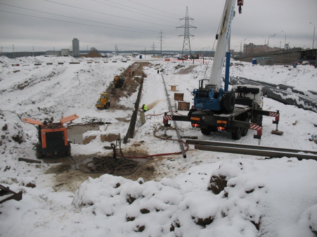 Уникальность объекта: Тоннель строился «Миланским способом» под действующим Калужским шоссе, в связи с большой протяженностью тоннеля устройство водопонизительных скважин производилось в зоне разделительной полосы шоссе и дублёров, устройство сбросного трубопровода осуществлялось под шоссе методом ГНБ с дальнейшей ручной разработкой грунта в зоне водопонизительных скважин для последующей врезки оголовков скважин в сбросной трубопровод.